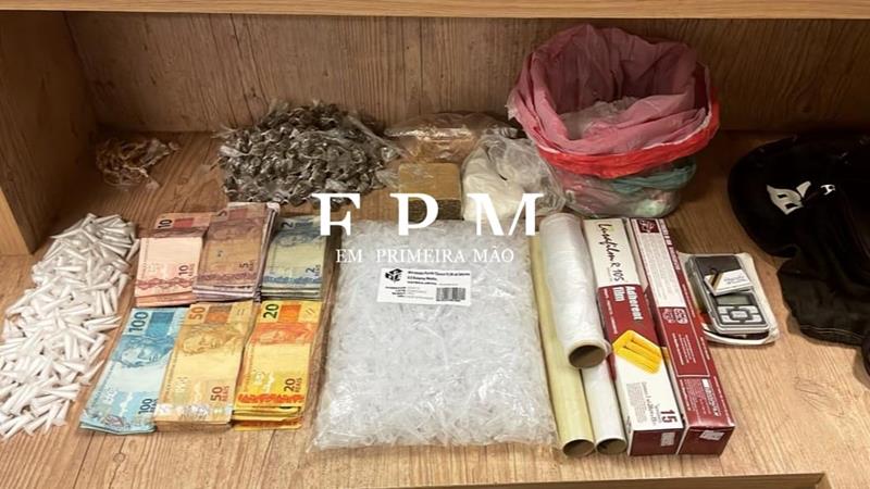 Com o outro indivíduo, que é menor de idade e também estava em uma residência vizinha, foi localizada uma bolsa onde foram encontradas 267 porções de maconha e a quantia de R$ 2.607,00 em notas diversas. Na residência conhecida como ponto de tráfico de drogas, os policiais localizaram mais entorpecentes.