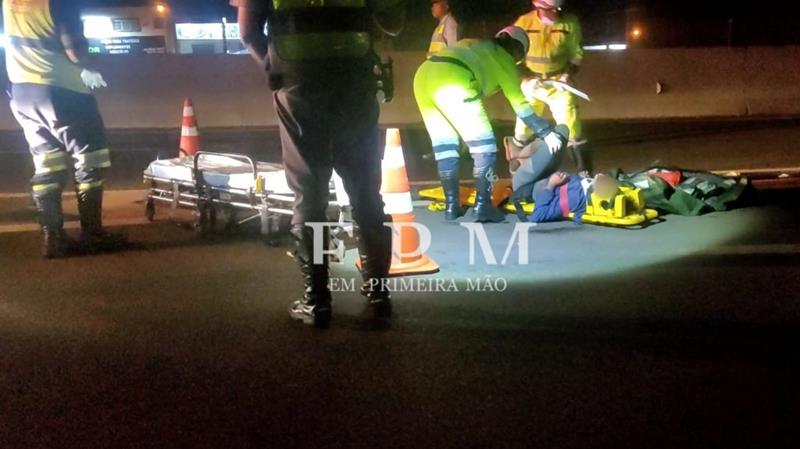 A vítima recebeu os primeiros atendimentos da equipe do Resgate da ViaPaulista e foi socorrida com vários ferimentos e uma fratura no tornozelo até a Santa Casa. O condutor do veículo não se feriu.