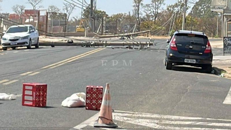 POLÍCIA Avenida Geralda Rocha Silva é parcialmente interditada após queda de postes 23 de agosto de 2024