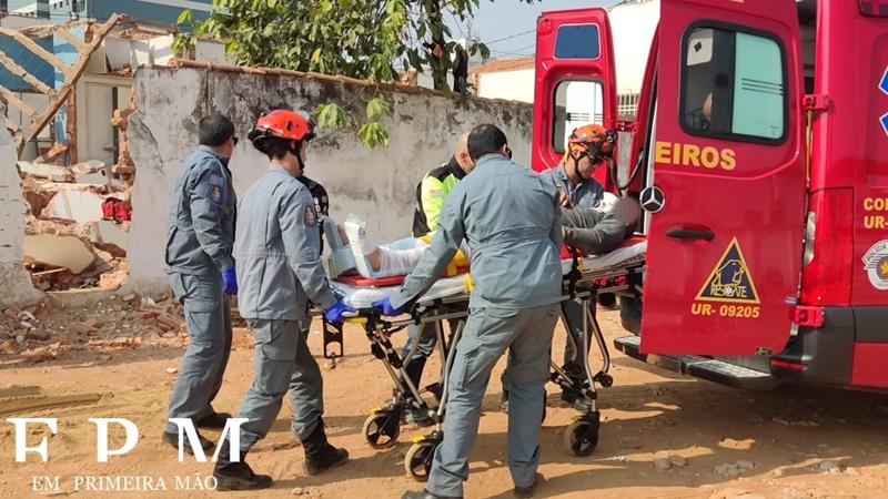 Outros trabalhadores ajudaram a vítima até a chegada do Corpo de Bombeiros que retirou o trabalhador dos escombros e após ser resgatado, o homem foi socorrido para a Santa Casa com fraturas nas pernas.