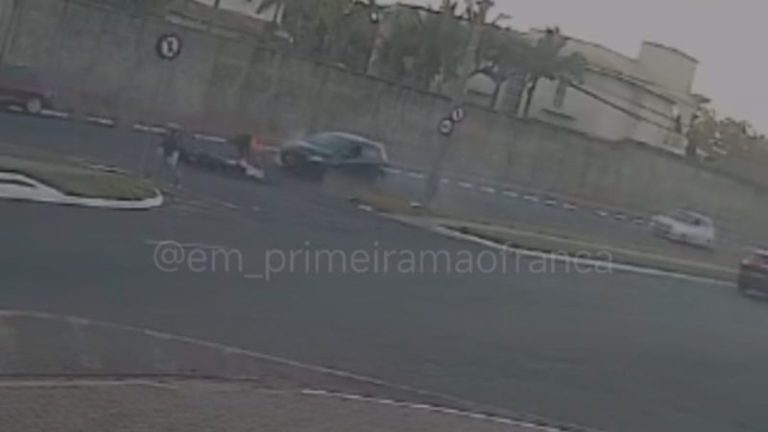 Câmera de segurança registra colisão traseira entre moto e carro em avenida de Franca