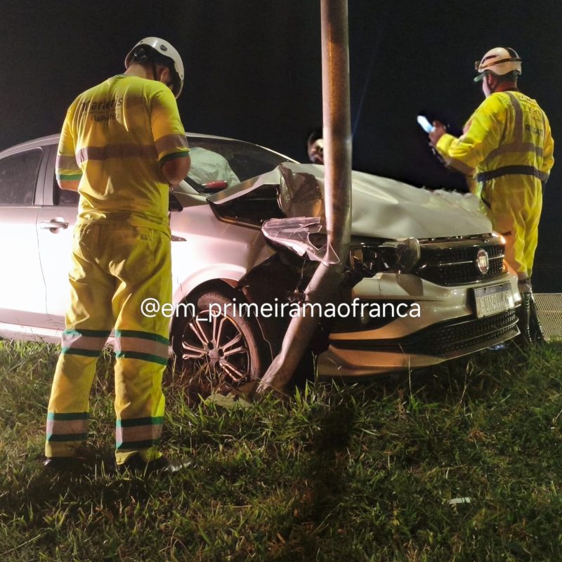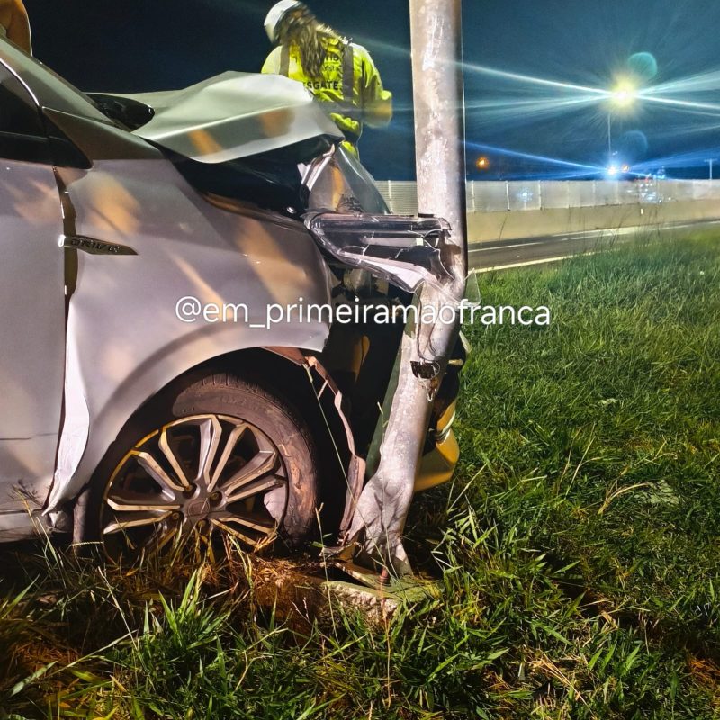 De acordo com informações apuradas no local, o veículo seguia no sentido Cristais Paulista–Franca quando o condutor foi surpreendido por um cachorro que atravessava a pista. Ao tentar desviar, ele perdeu o controle da direção, saiu da pista e chocou-se contra um poste de ferro de iluminação.