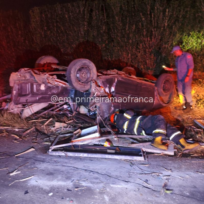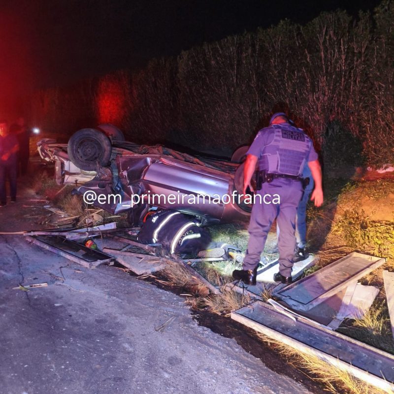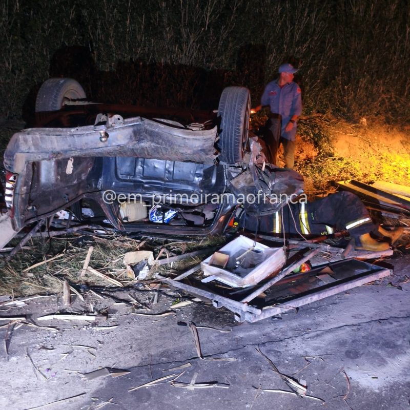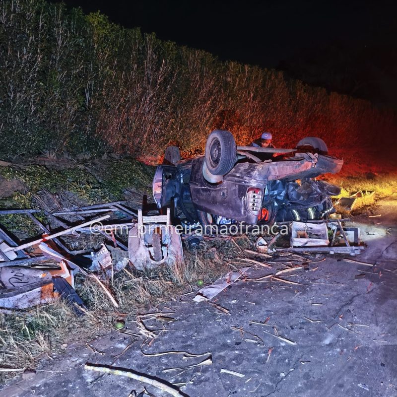 Segundo apurado no local, uma Ford Courier já estava capotada sobre a pista quando o motorista de uma caminhonete, que seguia sentido Franca, não percebeu o veículo acidentado e acabou batendo nele. Com o impacto, a caminhonete ficou com a parte dianteira completamente destruída.