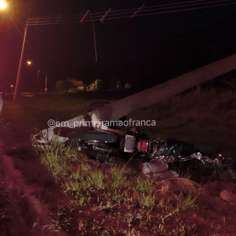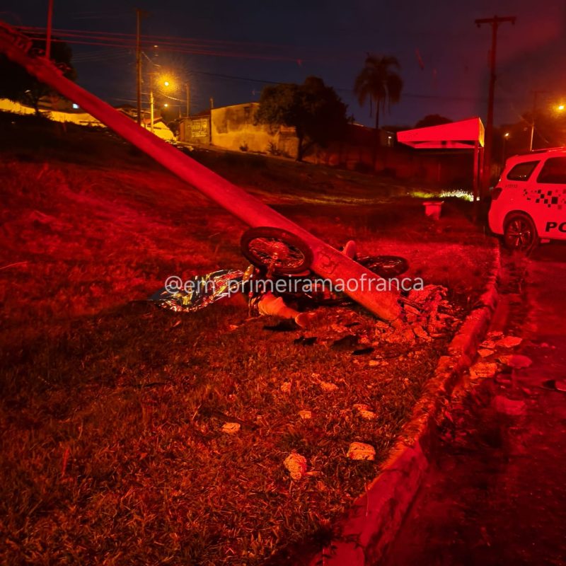 Um homem de 43 anos morreu na madrugada desta quarta-feira, 8, após colidir violentamente a moto que pilotava contra um poste na Avenida Leila Scarabucci Guimarães, no Jardim Palma, na zona leste de Franca.