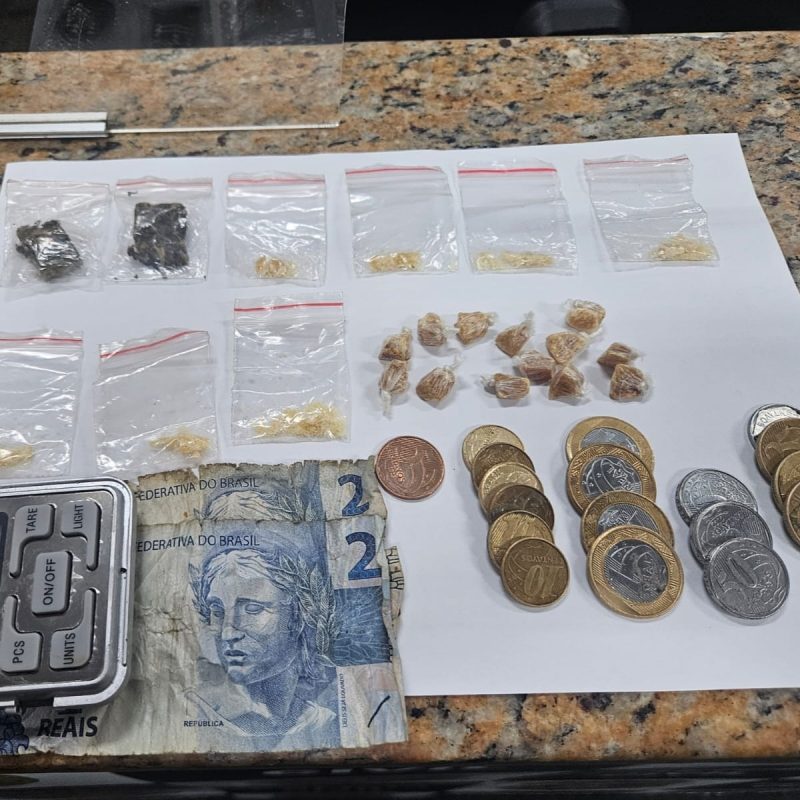 Ao chegarem ao local, os militares avistaram o homem, que, ao perceber a presença da viatura, tentou se livrar de algo jogando ao solo. Durante a abordagem, foram encontrados em seu bolso crack e uma quantia em dinheiro. No ponto onde ele havia dispensado o material, os policiais localizaram mais pedras de crack e porções de maconha, todas embaladas e prontas para a venda.