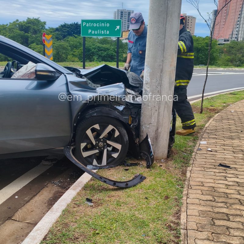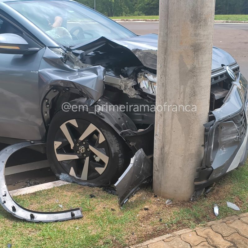 Uma jovem perdeu o controle do carro que dirigia e chocou-se contra um poste no início da tarde deste sábado, 18, no Parque Universitário, em Franca.