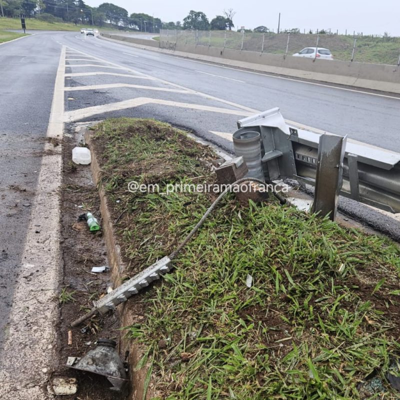 Motorista perde controle de veículo e colide contra defensa metálica na Cândido Portinari em Franca