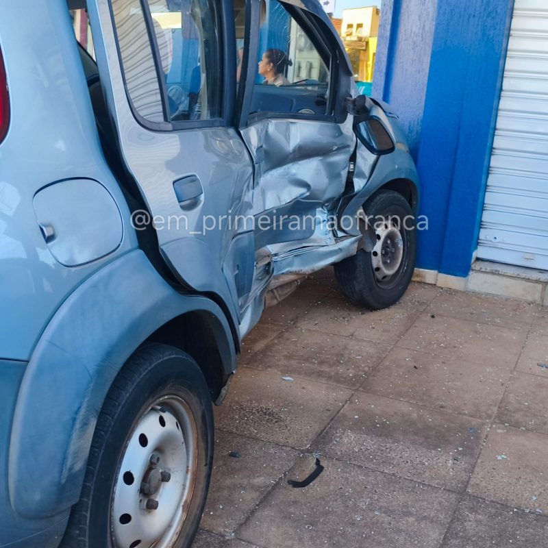 Com o impacto, ambos os carros subiram na calçada e quase invadiram uma loja. Uma mulher, passageira do Uno, foi socorrida pela equipe do Corpo de Bombeiros com ferimentos leves. Os motoristas dos veículos não se feriram.