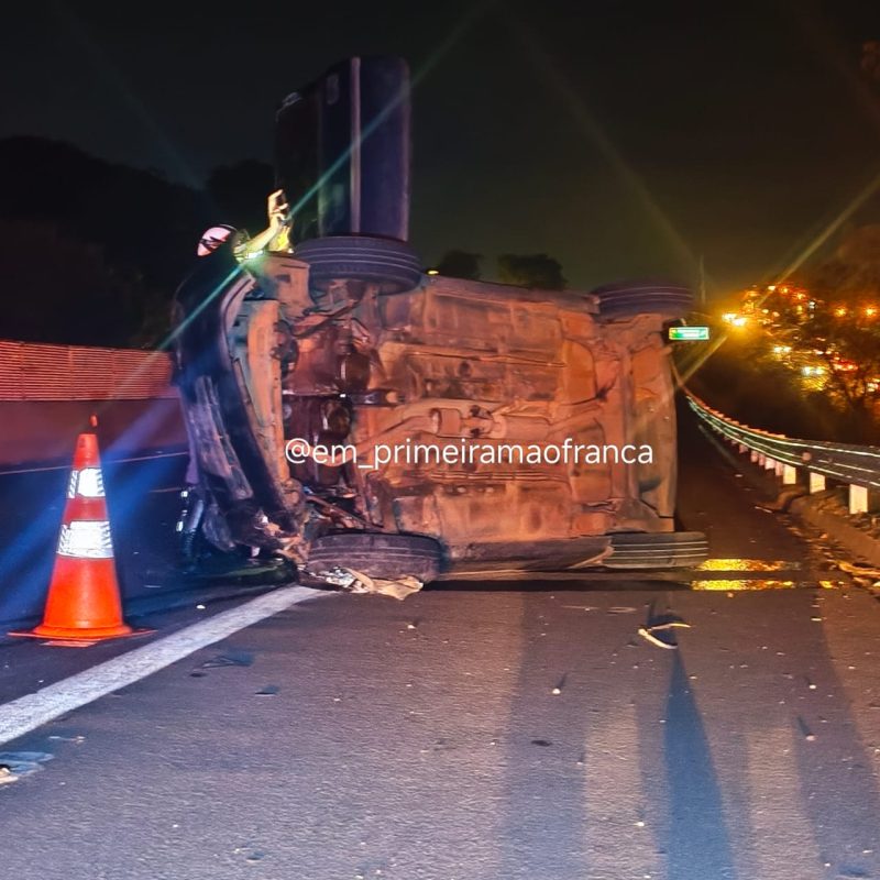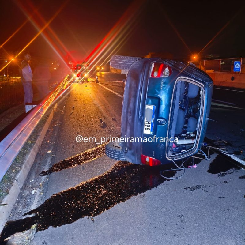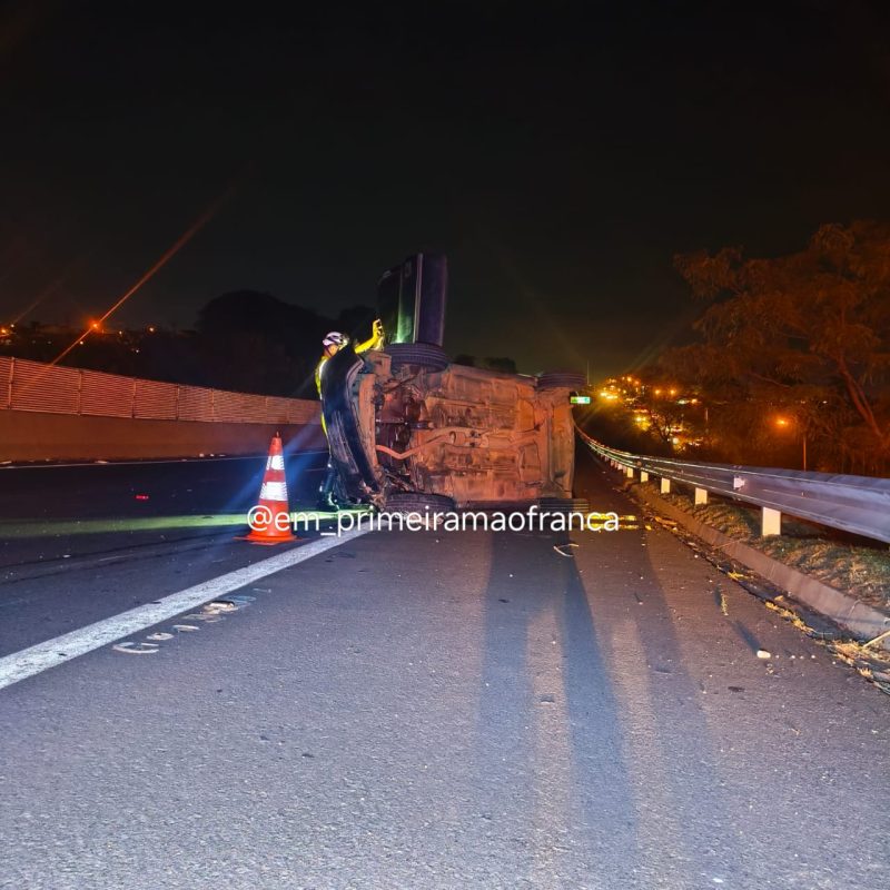 Um motorista fugiu após capotar o carro que dirigia na noite desta quarta-feira, 29, na Rodovia Cândido Portinari, em Franca.