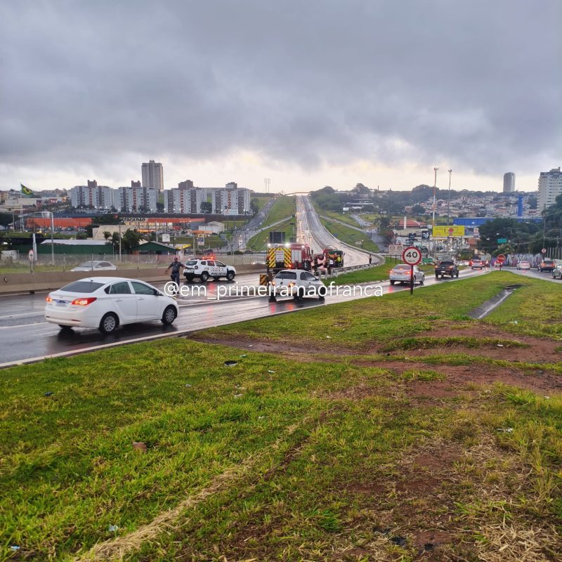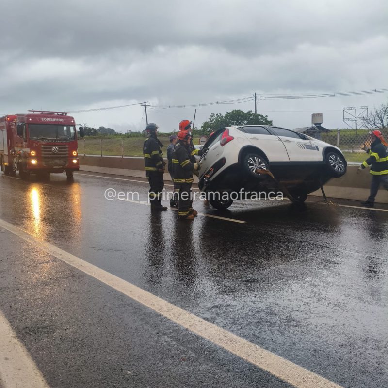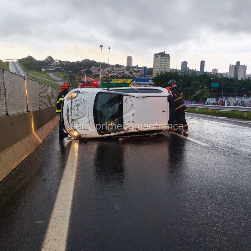 Segundo o apurado no local, o veículo era ocupado por um casal, que seguia no sentido Ribeirão Preto a Franca quando, em uma curva próxima ao viaduto do Galo Branco, o carro rodou na pista molhada e capotou. Por sorte, os dois ocupantes não se feriram.