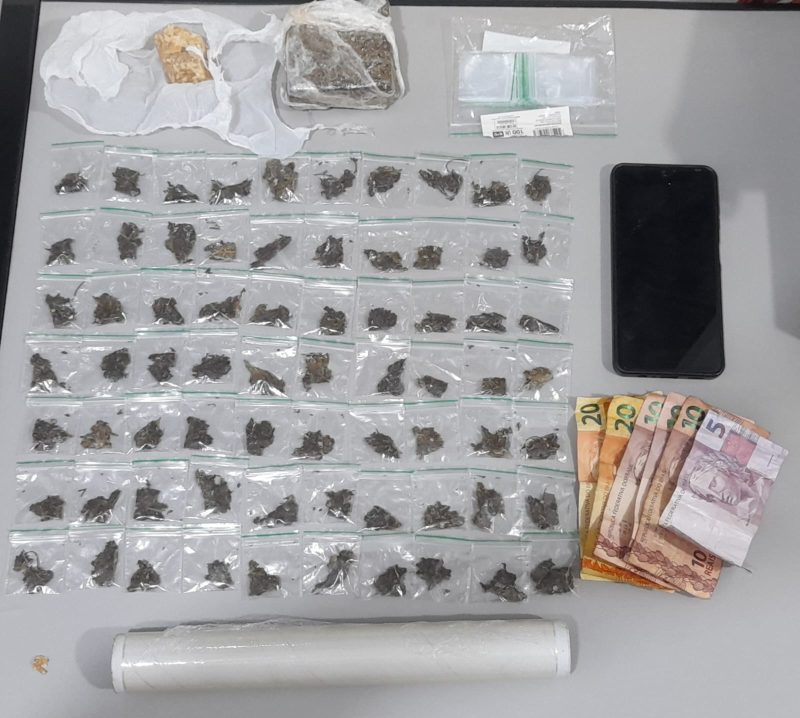 Ambos foram abordados e, durante a revista pessoal, foi encontrada uma porção de crack com o usuário, e com o morador, R$ 10,00 em espécie, valor que teria recebido pela venda da droga. Os policiais também vistoriaram o imóvel, onde localizaram materiais usados para preparo e embalagem de drogas, além de 70 porções de maconha, uma pedra de crack e R$ 65,00 em dinheiro.
