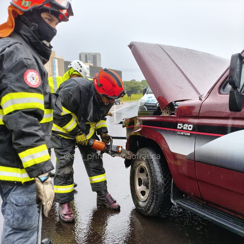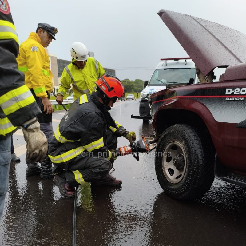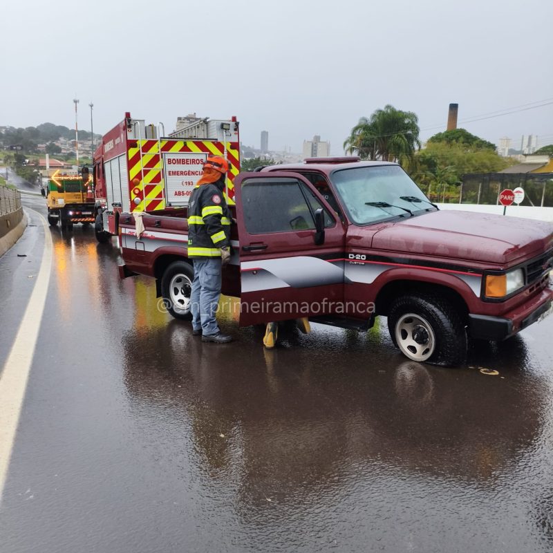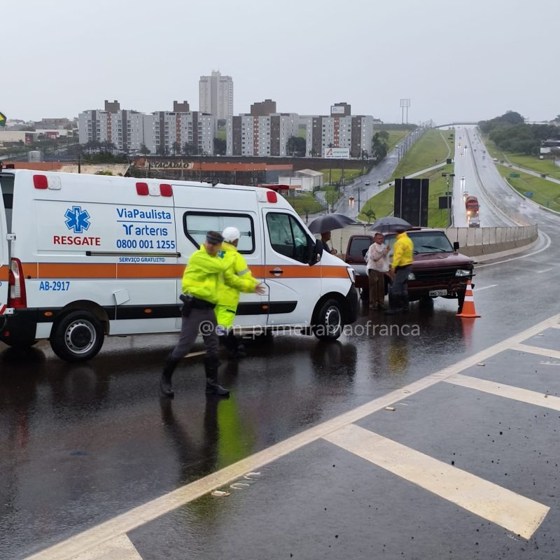 Segundo o motorista da caminhonete, ele seguia sentido Ribeirão Preto a Franca quando, próximo à alça de acesso ao Galo Branco, passou por cima de um ferro que estava na pista. O pneu estourou, a caminhonete rodou e colidiu contra a mureta de proteção. Uma motociclista que seguia logo atrás também se envolveu no acidente. Chovia no momento da ocorrência.