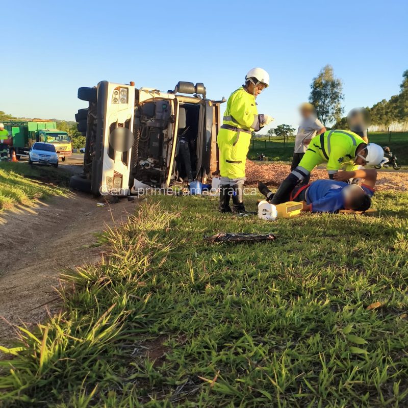 O motorista, que estava sozinho no veículo, foi socorrido com ferimentos aparentemente leves pela equipe da concessionária ViaPaulista.