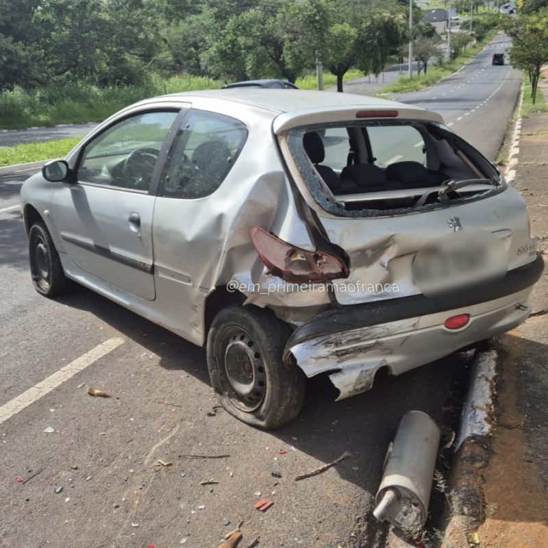Carro é encontrado danificado e no meio da via na Avenida São Vicente, em Franca