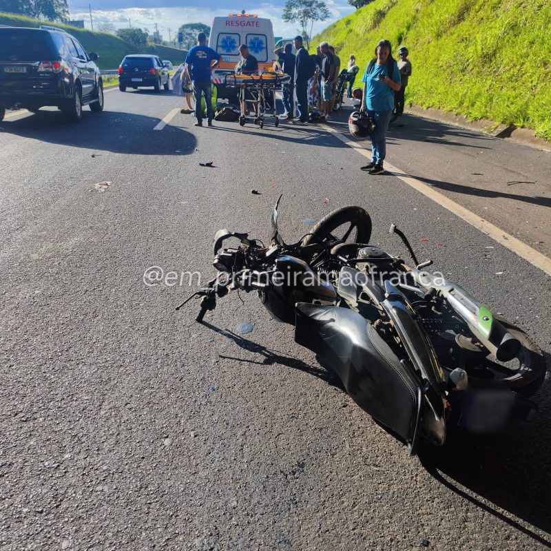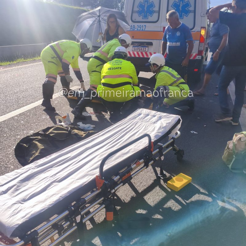 Com o impacto, o piloto caiu ao solo. O socorro foi acionado, e uma equipe da concessionária ViaPaulista deslocou até o local, onde prestou os primeiros atendimentos à vítima, que sofreu ferimento grave no joelho, ferimento no braço e escoriações pelo corpo. Em seguida, o motociclista foi encaminhado à Santa Casa de Franca.