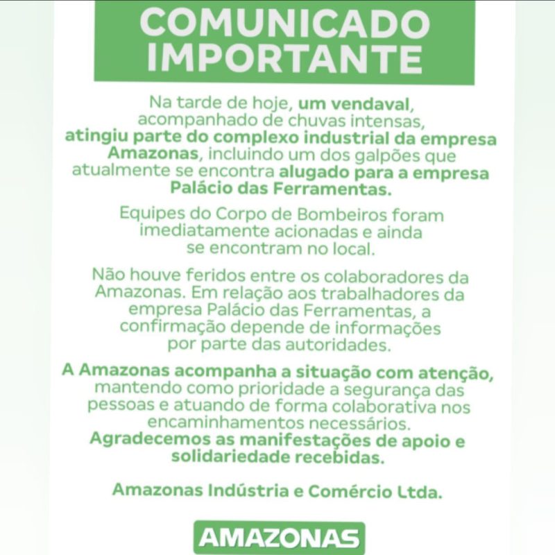 As empresas Amazonas e Palácio das Ferramentas emitiram uma nota sobre o caso.