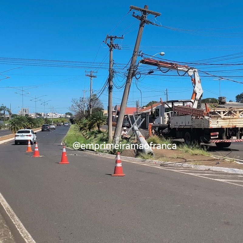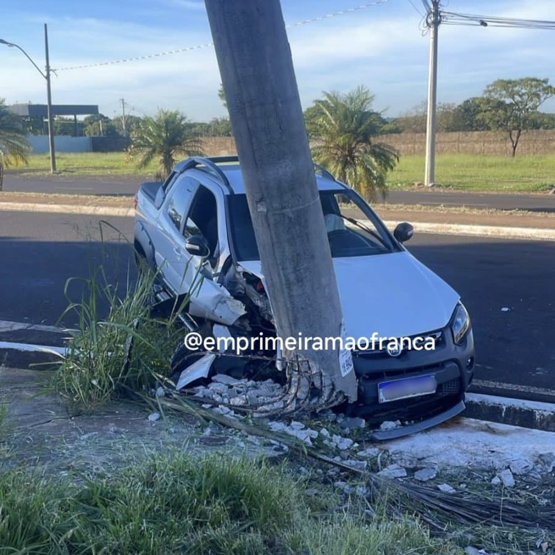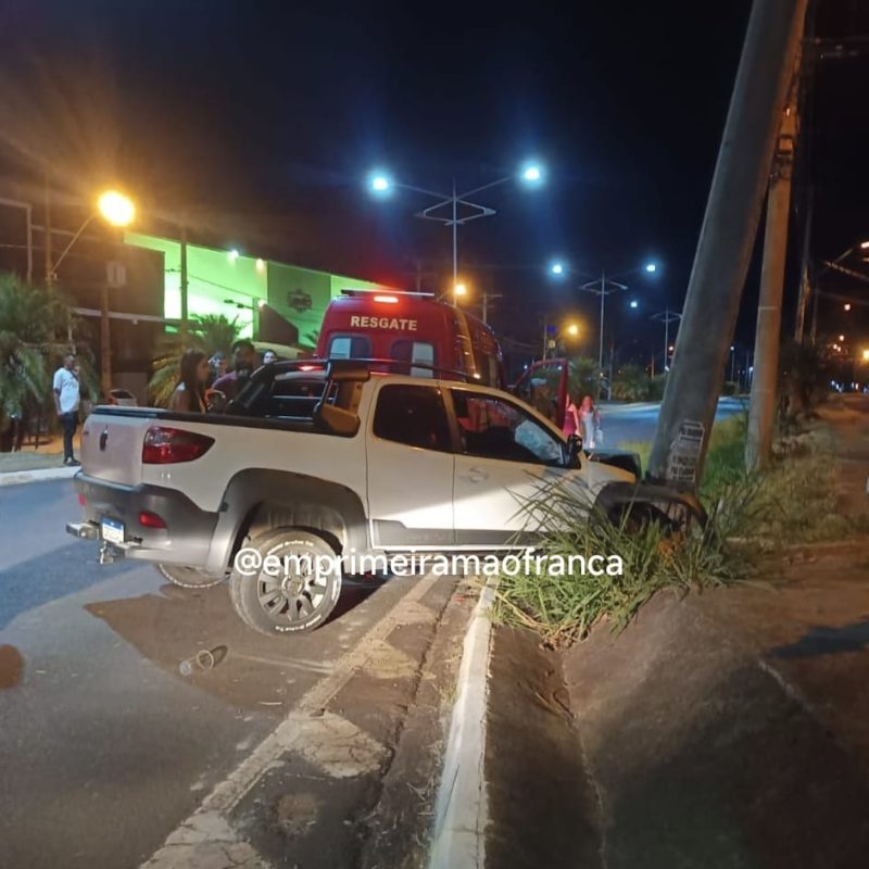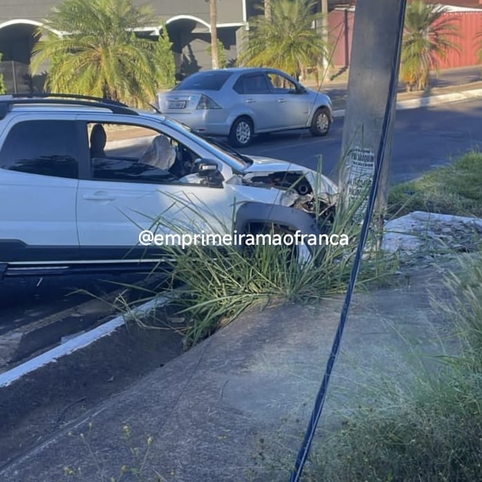 Motorista perde controle de veículo e colide contra poste em avenida de Franca