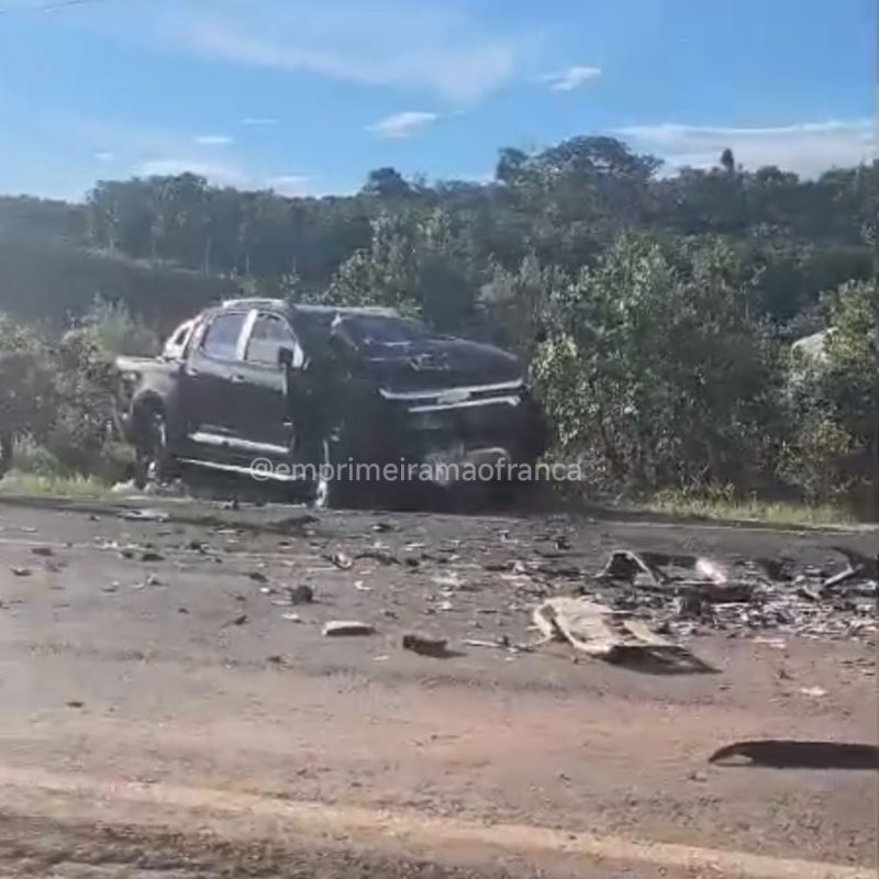 Segundo a polícia, o motorista da caminhonete branca, por motivos a serem apurados, teria invadido a pista contrária e colidido com uma caminhonete de cor escura, onde estava uma família, que seguia no sentido Franca a Ibiraci.