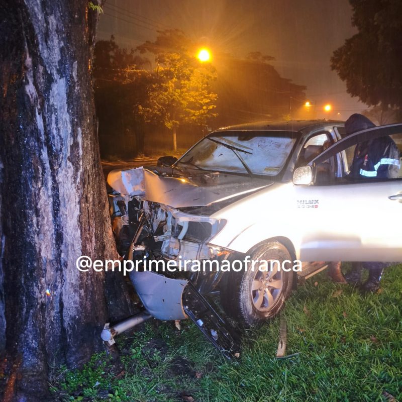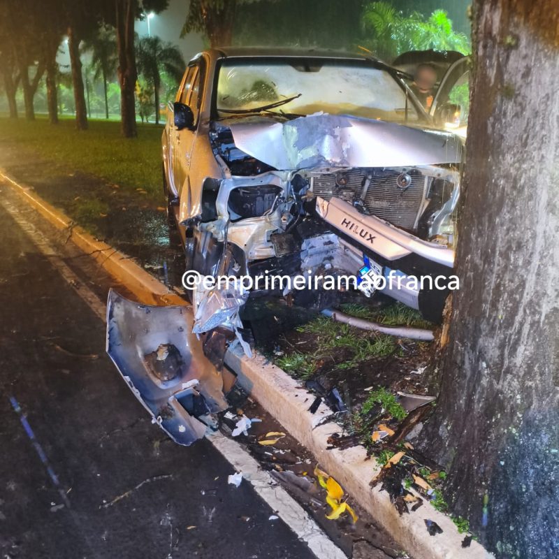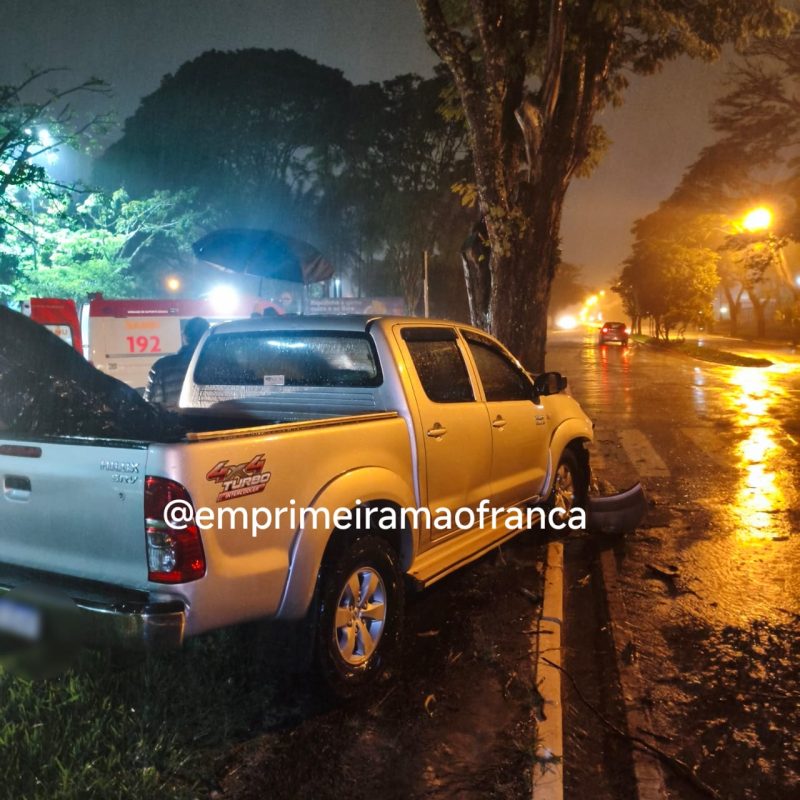 Motorista perde controle de caminhonete e colide contra árvore em avenida de Franca