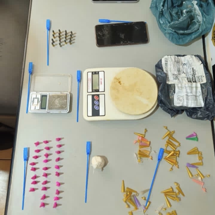 Segundo informações, durante vistoria na residência do menor, os policiais encontraram 33 gramas de cocaína compactada, além de 28 pinos cheios e 49 vazios. Também foram apreendidas duas balanças de precisão, 17 munições calibre .22 e dois aparelhos celulares.