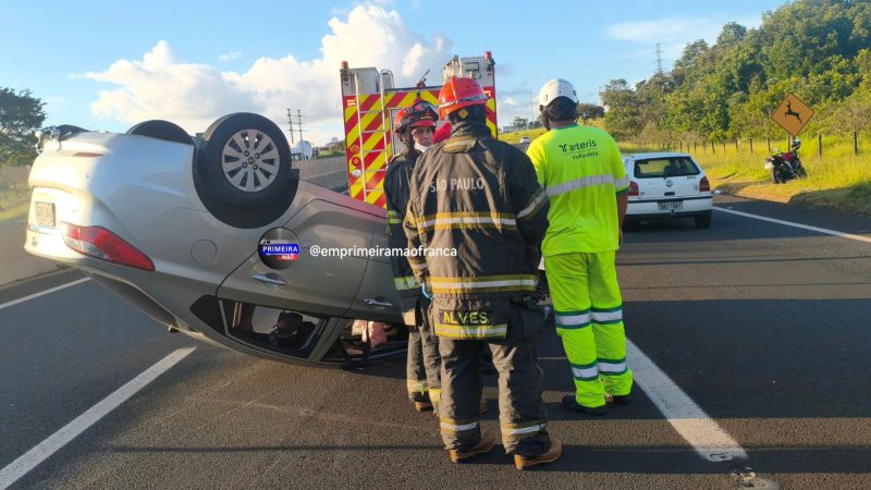 Motorista perde controle de veículo e capota na rodovia Cândido Portinari, em Franca