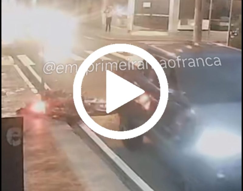 Foram divulgadas imagens de um grave acidente em um cruzamento semafórico na região central de Franca, ocorrido na noite de sexta-feira, 6, onde um motociclista foi socorrido com ferimentos graves.