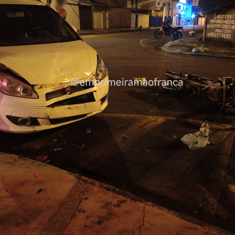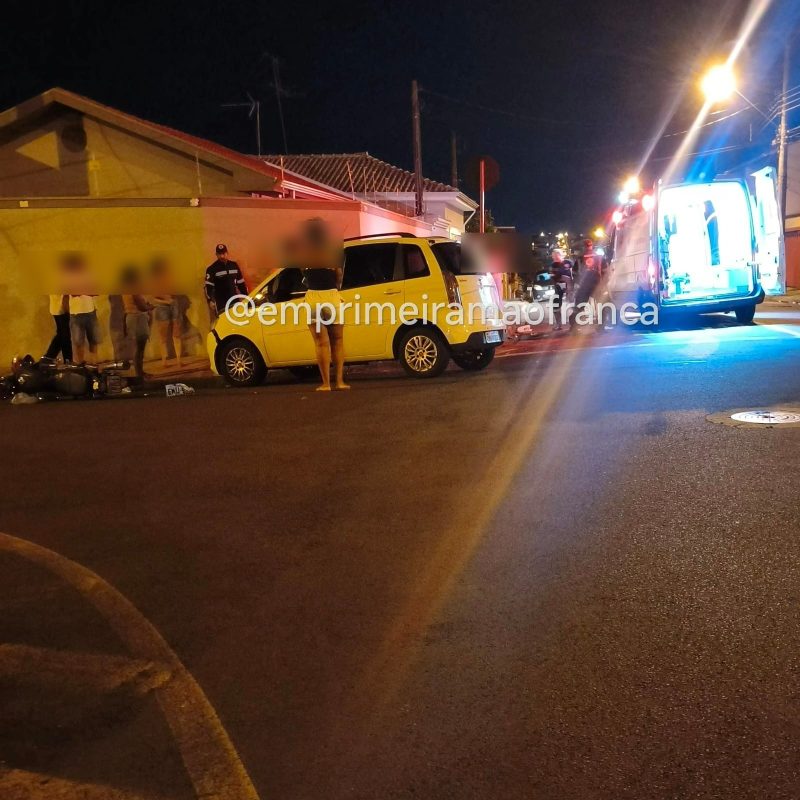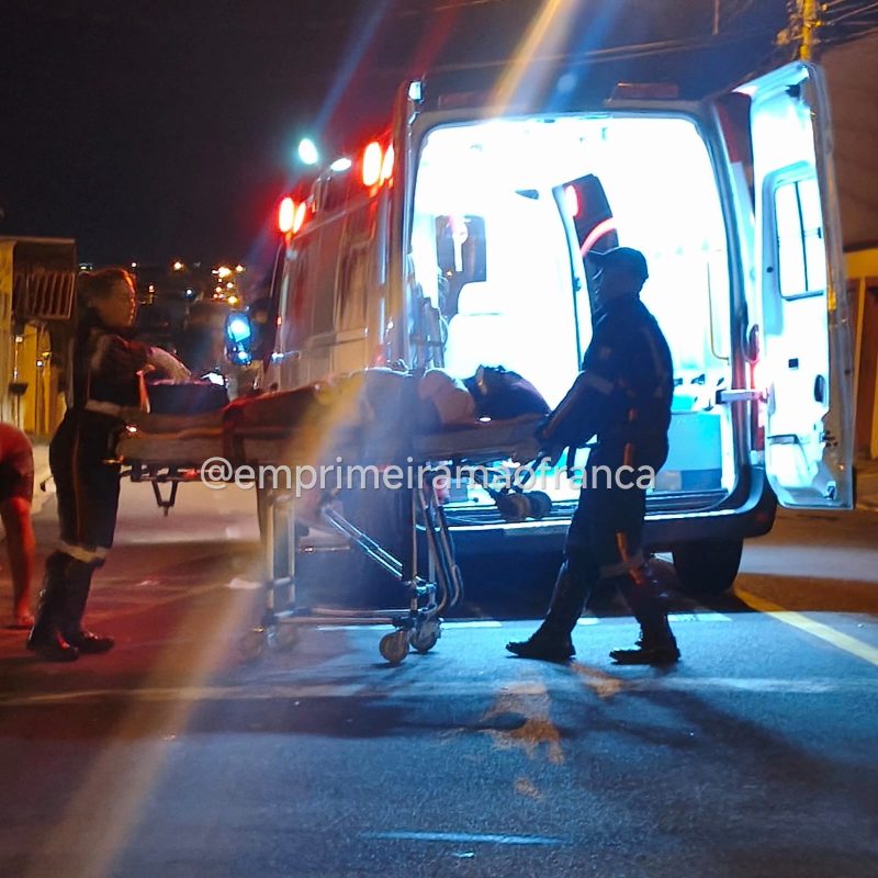 Após receber os primeiros atendimentos no local, ela foi encaminhada para a Santa Casa de Franca. A motorista do carro não se feriu.
